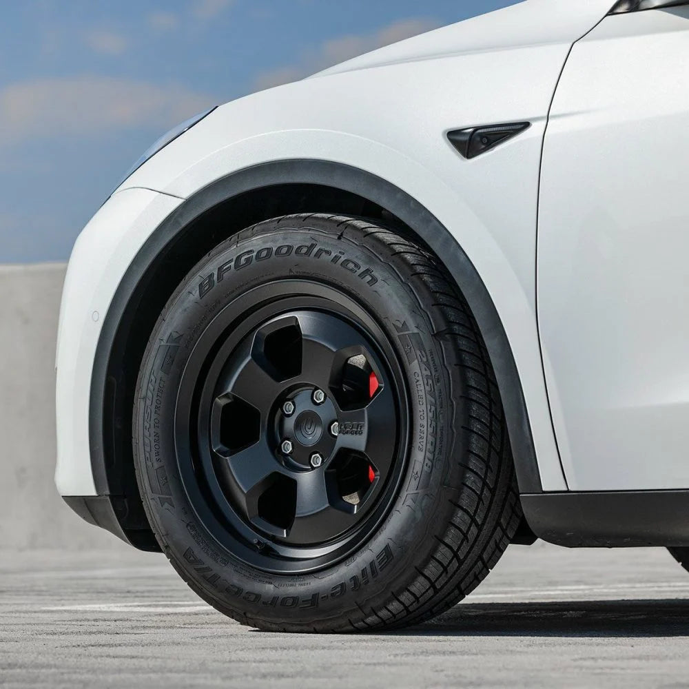The UP.FIT PD Forged Wheel for the Model Y reimagines the iconic ‘steelie’ wheels used on law enforcement vehicles with a modern, high-performance design. Engineered through our Tesla police car UP.FIT division, these wheels are built to withstand the rigors of daily patrols and the toughest driving conditions faced by law enforcement. With superior durability over the OEM cast aluminium Model Y wheels and long-term cost-effectiveness, they offer an ideal upgrade not just for police fleets, but for Model Y owners seeking uncompromising strength and reliability.